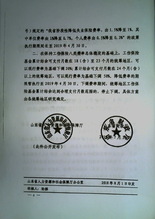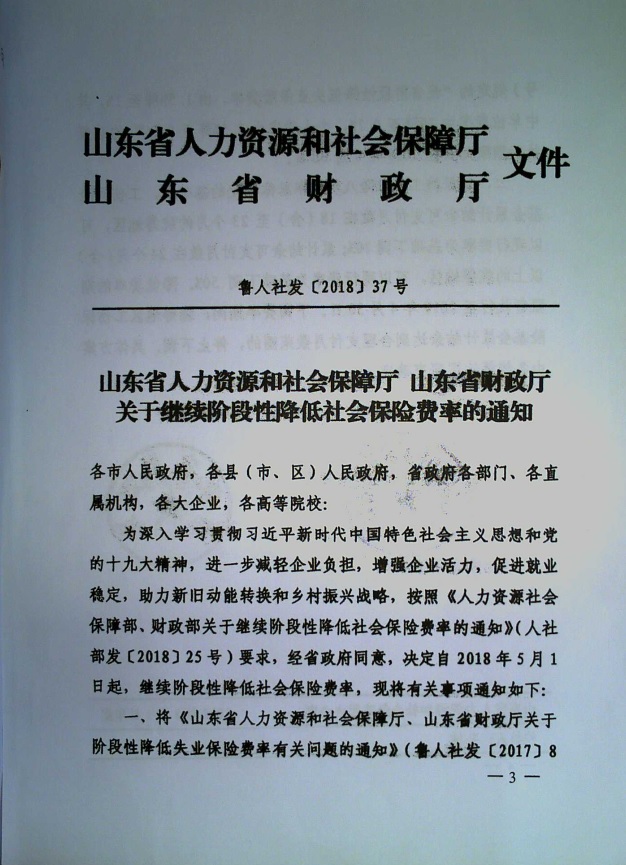 關(guān)于轉(zhuǎn)發(fā)魯人社發(fā)【2018】37號文件繼續(xù)階段性降低社會保險費率的通知