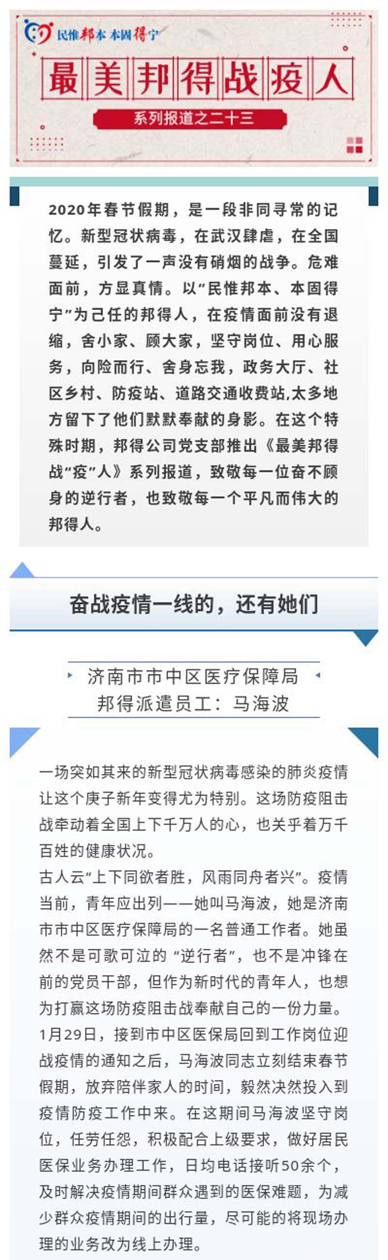 最美邦得戰(zhàn)“疫”人 — 系列報(bào)道之(二十三)