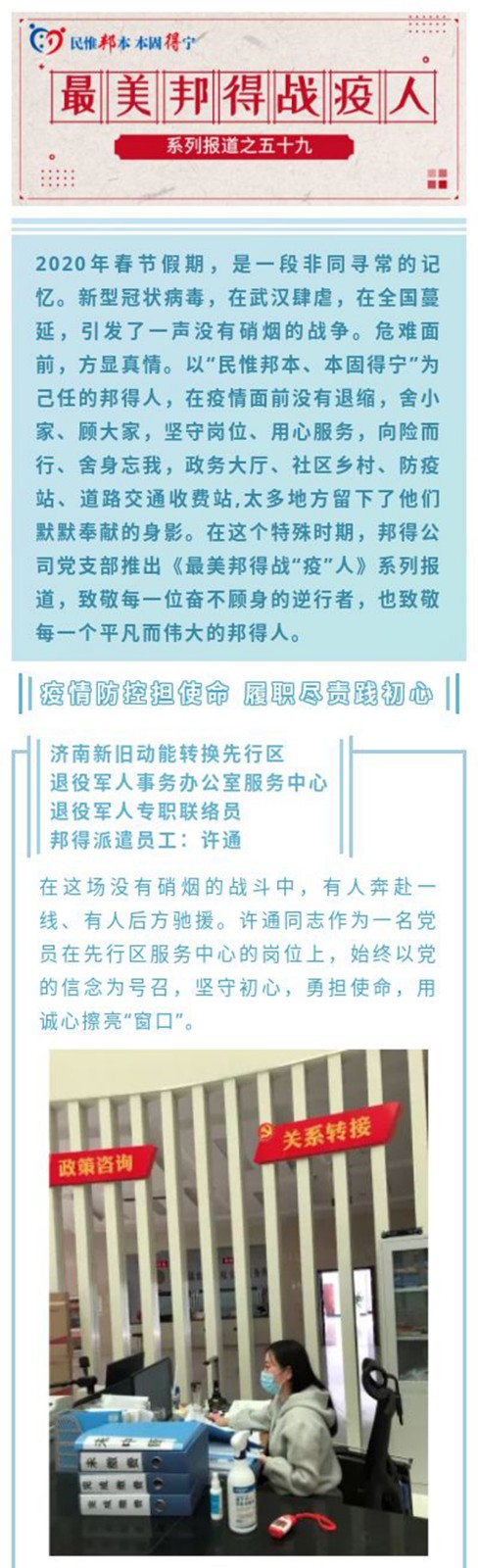 最美邦得戰(zhàn)“疫”人—— 系列報道之(五十九)