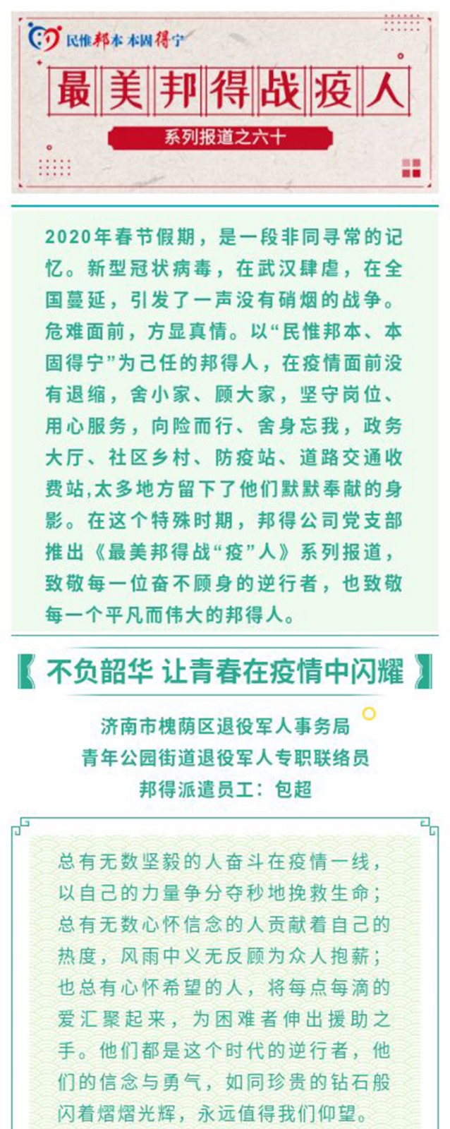 最美邦得戰(zhàn)“疫”人—— 系列報道之(六十)
