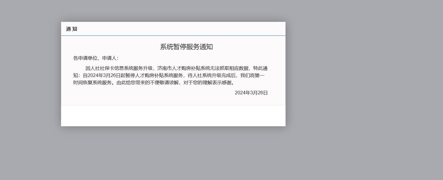 為避免系統(tǒng)維護升級員工無法提報,本次濟南市高層次人才購房補貼申請受理時間為2024年5月1日-2024年5月8日周一至周五(節(jié)假日除外、周末除外)上午9:00-11:00,下午13:00-16:00,符合條件人員統(tǒng)一通過申報系統(tǒng)報送資料至邦得。同時,24.03.26開始系統(tǒng)調(diào)試無法申報,請見第1附件。如果系統(tǒng)調(diào)試沒有恢復,無法申報該補貼。